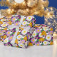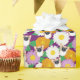 Añada un toque lindo a los regalos con este papel de envoltura que presenta ilustraciones de estilo de cierre de un perro de corgi flores y gráficos de flores vibrantes en blanco, amarillo, verde, naranja y lavanda con fondo morado.