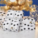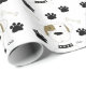 Un diseño divertido con un lindo perro de caricatura con un collar de perro y una etiqueta, huellas de pata y huesos acentúan el fondo.