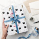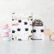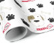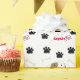 Un diseño divertido con un lindo perro de caricatura con un collar de perro y una etiqueta, huellas de pata y huesos acentúan el fondo.