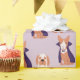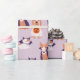 Papel de envoltura temática de Halloween que presenta el caprichoso ilustracion de un gato y dos perros disfrazados - fantasma, murciélago y un vampiro. El arte de estilo personalizado se convirtió en un patrón.