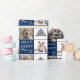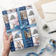 Mascota De Cachorro Perro 2 Fotos Merry Jolly Papel envuelto de árbol de Navidad. Fondo azul oscuro y blanco con copos de nieve y un simple árbol de Navidad. White Merry, Happy, Tipografía de Jolly. El diseño tiene 2 fotos personalizados de perros - inserte su perro favorito o cualquier otra foto de mascota en la plantilla y haga que sus Navidades personalizados envuelvan el regalo.