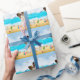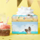 El perro lindo sentado en la playa es un regalo perfecto para alguien que ama esta raza de perro.