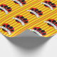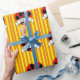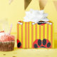 Huella de pata de perro al estilo personalizado, corazón rojo y pancarta. Papel de envoltura personalizado. fondo de rayas naranjas y amarillas. Editar texto para personalización. Idea de envoltura de regalo para los amantes del perro.
