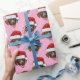 Divertido perro Personalizado de Sombrero Cara Navidades de fotos Papel de envolver rosado