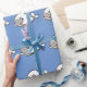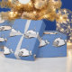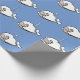 lindo, gordo personalizado de ballenas dibujando en blanco y negro sobre un fondo azul con grandes dientes sonrientes.