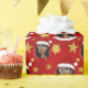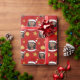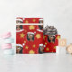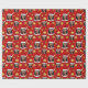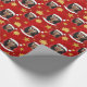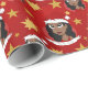 Navidades envolviendo papel con un ilustracion de una hermosa joven afroamericana con cabello ondulado y el gorra de Santa Claus; con plantilla de texto editable, diseño de vacaciones Navidades con un fondo rojo sin fisuras con estrellas