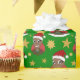 Navidades envolviendo papel con un ilustracion de un afroamericano feliz y sonriente hombre con el gorra de Santa Claus; con plantilla de texto editable; diseño de vacaciones de Navidades con un fondo verde sin fisuras con estrellas