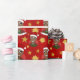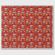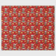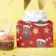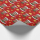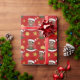 Navidades envolviendo papel con un ilustracion de un afroamericano feliz y sonriente hombre con el gorra de Santa Claus; con plantilla de texto editable; diseño de vacaciones de Navidades con un fondo rojo sin fisuras con estrellas