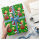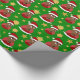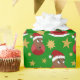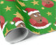 Navidades envolviendo papel con un ilustracion de un afroamericano feliz y sonriente hombre con el gorra de Santa Claus; con plantilla de texto editable; diseño de vacaciones de Navidades con un fondo verde sin fisuras con estrellas