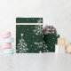 Este papel de envoltura de Navidades presenta un pino blanco y un patrón de nieve blanca con texto personalizado sobre un fondo verde (color de fondo modificable). Para una personalización más avanzada de este diseño, haga clic en el enlace "personalizar más adelante".