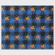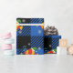 Ilustracion de un pez naranja tropical amarillo navidad bajo el océano con burbujas en un fondo de patrón búfalo de cuadros negros azules. Este bonito diseño de personalizado es un regalo para los amantes de la navidad, la pesca y el buceo.