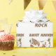 Un lindo ilustracion de estilo personalizado de un peregrino caminando. El perro marrón y blanco tiene el texto, BASSET HOUNDS ROCK. Un diseño para los amantes del perro.