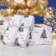 Este papel se diseña con un gran árbol de pino en sombras de blanco y negro. Eliminando la necesidad de etiquetas, este papel está seguro de sentir bien a su mejor amigo durante los días de fiesta.