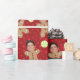 Rollo completo de patrón sin costuras de color rojo berry con rondas de caramelos de menta verde. Este envoltorio de regalo de fotos de personalizados que permite la personalización, incluyendo la imagen de la cara de alguien (muy bien recortada) en todas las personas pequeñas de pan de jengibre.