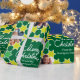 Fun Navidades brillantes fotos familiares envolviendo papel regalo en tonos verdes y blancos. Personalizar con sus propias tres fotos familiares especiales, nombre de familia o mensaje. Actualmente se lee Merry Christmas de la familia Rodríguez. Diseñado exclusivamente por Sarah Trett.