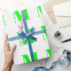 Personalizar con carta inicial, regalo de neón verde blanco Envoltura Papel Personalizar todos tus regalos con su letra individual, iniciales, alfabeto Feliz Navidad, Felices vacaciones regalo papel