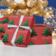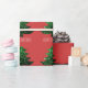 Personalizable Hermoso árbol de Navidad de moda con brillantes verdes. ¡Puedes cambiar el color de fondo rojo y el texto! Foto de chispas, no purpurina real.