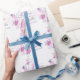Papel de envoltura personalizado de boda bonito ideal para envolver un regalo boda muy especial a las recién casadas o para envolver favores matrimoniales. Simple y moderno rosa, azul marino y blanco, contorno de flores y pétalos gráficos papel de envolver de regalo boda. Personalizar con su propio nombre de novia y novio y fecha de boda. Diseñado exclusivamente por Sarah Trett.
