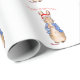 Pedro el Conejo vistiendo un sombrero de Santa con cuernos y sosteniendo un bastón de caramelo. "Feliz Navidad" saludo en rojo.