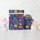 Coloridos Navidades de papel envolvente de pickleball con coloridos íconos de Navidades sobre fondo azul marino. Gran idea para envolver tus regalos para tu amigo o miembro de tu familia de pickleball