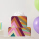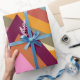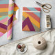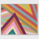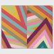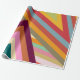 Este papel de envoltura tiene un diseño retro de los años 70 hecho de capas de arriba abajo Vs en tres lugares todos en colores retro.