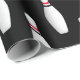 se pueden editar los pines de bolos blancos con franja roja y negra sobre fondo negro.