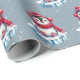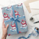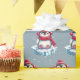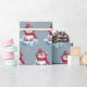 Un pingüino de acuarela adorable sentado en un iceberg con una bufanda roja, un gorra y unos cascos con copos de nieve sobre un fondo azul invernal. Se puede cambiar el color de fondo.