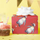 Pingüino festivo de desfile animal en Santa Hat en Navidades rojos texturados, y decoraciones presentan nuestra divertida obra de arte de un pingüino lindo adornado con un sombrero de Santa roja con un fondo rojo texturado pintado por Traci Van Wagoner, nuestro talentoso ilustrador de libros para niños. En la parte de atrás de muchos de estos divertidos regalos animales también encontrarás nuestro capguín caprichoso por la espalda con una corona hueca con un arco de Navidades rojos en el fondo. Únete al desfile de animales y comparte una sonrisa hoy.