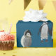 Pingüinos adorables. Dibujo vectorial. Color de fondo personalizado.