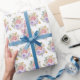 This fun and whimsical wrapping paper features pink and purple elegant flowers.