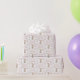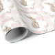 Beautiful wrapping paper featuring whimsical watercolor bunny holding a balloon, delicate pink ribbons, daisy florals, and soft pastel gingham pattern.