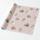 Christmas gift wrapping paper feature modern Merry Christmas script and botanical leaves wreaths, with personalized family name and 6 photos in blush pink and gold, simple and elegant.