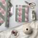 Este original papel de envolvimiento de vacaciones propone una banda verde alternante con una franja de poinsettias color agua rosa. Las puntitas proceden de una pintura acuática original. Copyright Leah Wiedemer