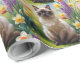 Un gato alegre se sienta tranquilamente sobre la exuberante hierba verde, rodeado de coloridas flores de primavera bajo un suave cielo azul. Esta pintura al óleo digital captura un momento sereno con pinceles expresivos, colores cálidos y un sentido de suavidad.