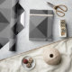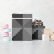 Este papel de envoltura tiene un diseño geométrico de triángulos que forman cuadrados que se parecen a una vista de pájaro de las pirámides.