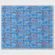 Este papel de envoltura de Cute Pirates tiene un lindo patrón de suéter pirata nórdico basado en el tema de los clásicos diseños de punto de Fair Isle. El patrón es de círculos azules y azules y rayas de diamante. Cada forma tiene diferentes adorables motivos piratas. Tienes peces lindos angulares, tiburones, huesos cruzados de cráneo con gorra pirata y un monstruo kraken en los círculos. En las formas de los diamantes se tiene un barco pirata en el océano, cadena y ancla, rueda de barco y una isla tropical desierta. Entre el patrón están los pequeños peces y cangrejos.