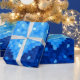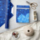 Papel de envoltura de corazón azul con un hermoso ilustracion abstracto de un corazón cristalizado hecho de pequeños polígonos en diferentes tonalidades de azul. Esta elegante obra geométrica da una sensación de frío e invierno y tiene un toque moderno.