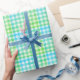 Papel De Regalo Plaid Gingham Lime Green Blue Moderno Simple Check