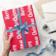 Plantilla Elegante Feliz Navidad Color Blanco Rojo Rayado Clásico Nostalgic Wrapping Papel.
