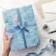 Papel De Regalo plumas azules abstractas y copos de nieve