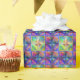 Bright colors overlap and merge to form a fun collage of rainbows and shapes.