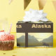 Un alce se extiende a través de un estanque en un día soleado de otoño en la Cordillera Brooks de Alaska. También aparece el texto "Alaska".