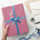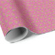 Acaramado con hojas verdes, bayas rojas y puntos blancos sobre un fondo rosado.