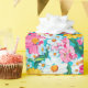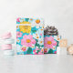 Un bonito papel de regalo floral retro azul, rosa, blanco y amarillo para muchas ocasiones en verano.