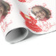 Personalizado foto y Navidades de nombre premio angel regalo de regalo papel de envoltura con un ángel sonriente cubierto de encaje rojo sosteniendo una luz de velas. El hermoso paisaje de encaje vintage de estrellas y flores que recuerdan el antiguo arte de la confección de encajes. Personalice con el nombre y la foto usando la plantilla proporcionada. Nos especializamos en diseños hechos a personalizado, por lo que contacte con nosotros si desea un diseño único hecho a pedido usando este diseño básico de ángel.