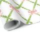 Este divertido diseño precoz cuenta con un enrejado jardín de diamantes verde con arcos rosados en las intersecciones.