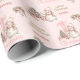 Navidades muy amables envolviendo papel con un lindo muñeco de nieve vintage, número uno y árbol de Navidad con regalos todo de color rosa para una bebé. Personaliza fácilmente el texto. Visita la tienda para ver la línea completa de productos disponibles - Kate Eden Art