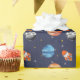 Papel de envoltura de fiesta de 1.ᵉʳ espacio moderno. El espacio inspiró el primer viaje alrededor del sol con planetas de acuarela, cohetes y estrellas.
