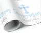 Primer papel de embalaje personalizado precioso de la ceremonia de la comunión santa para el muchacho. Cruz azul en colores pastel ligera con el falso diamante en centro y la comunión en letras modernas de la escritura. Esy para corregir y para añadir el nombre del muchacho. Perfeccione para el corredor del envoltorio para regalos o de la tabla.