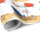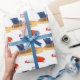 Profesora jubilada, divertida en la playa, envuelta en papel.